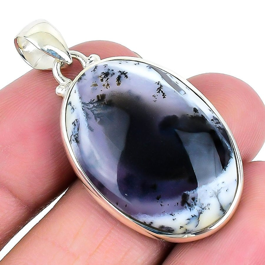 Dendrite Opal Stone Bezel New Wife Boho Daughter Gift Pendant Jewelry 925 Silver