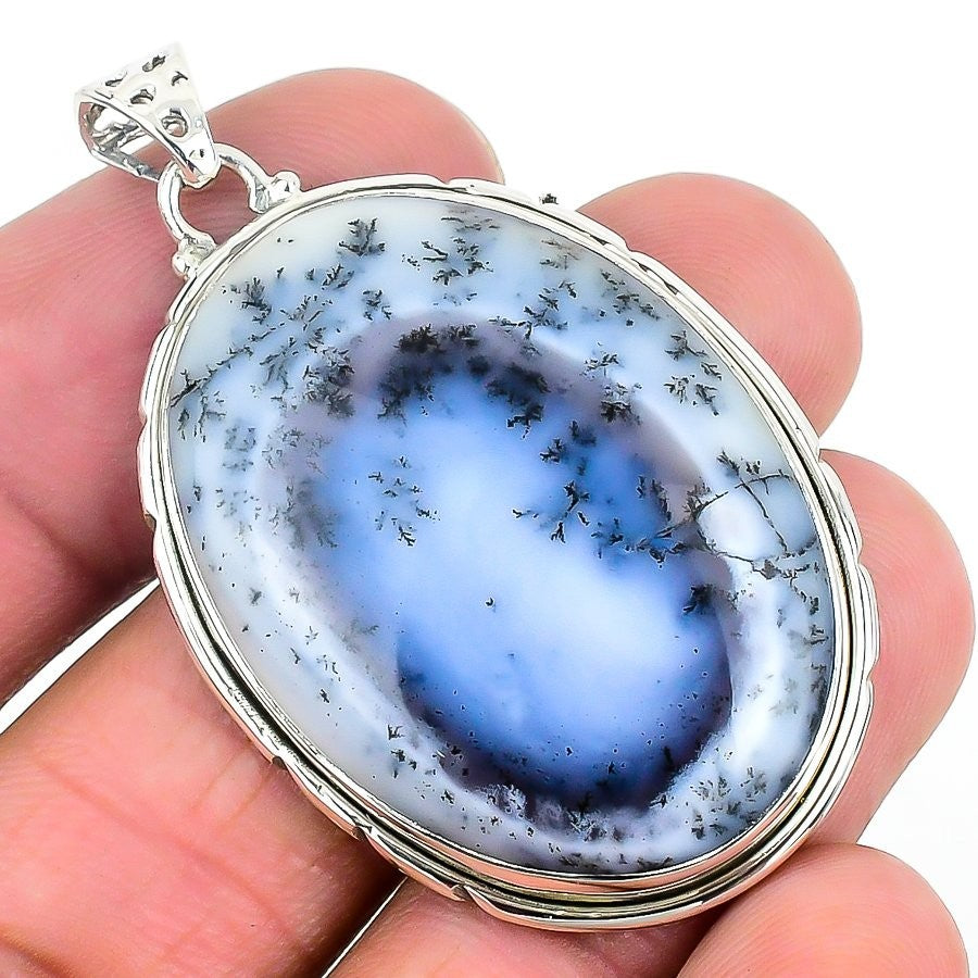 Dendrite Opal Stone Solid Silver Art Deco Best Daughters Gift Boho New Pendant