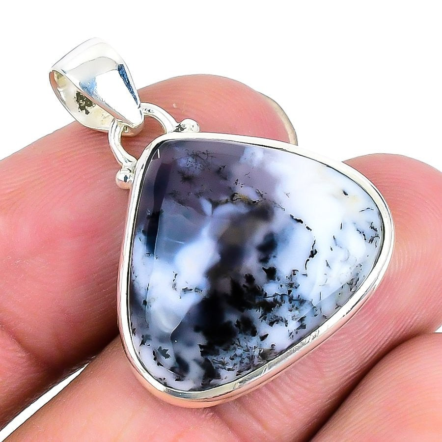 Dendrite Opal Stone Solid Silver Wife Sisters Day Bezel Wedding Pendant Jewelry