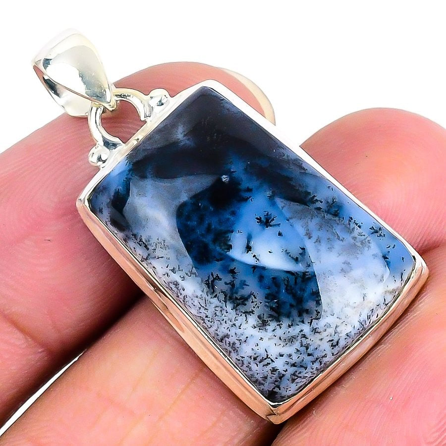 Dendrite Opal Stone Solid Sterling Silver Daughter Gift Mother Bezel New Pendant