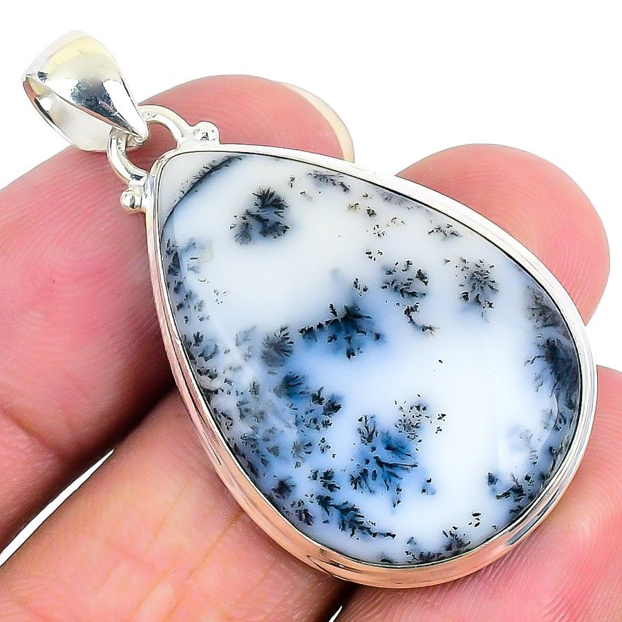 Dendrite Opal Stone Solid Sterling Silver Sister Engagement Boho Pendant Jewelry