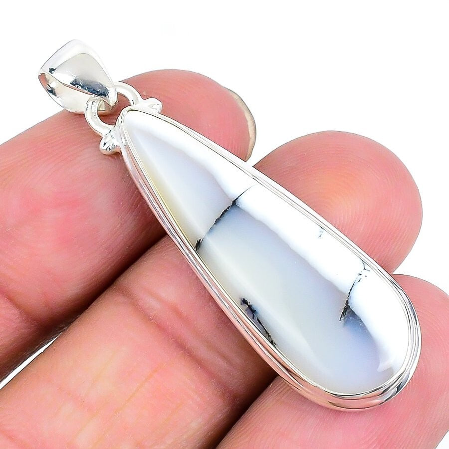 Dendrite Opal Stone Solid Sterling Silver Trendy Boho Bezel New Pendant Jewelry
