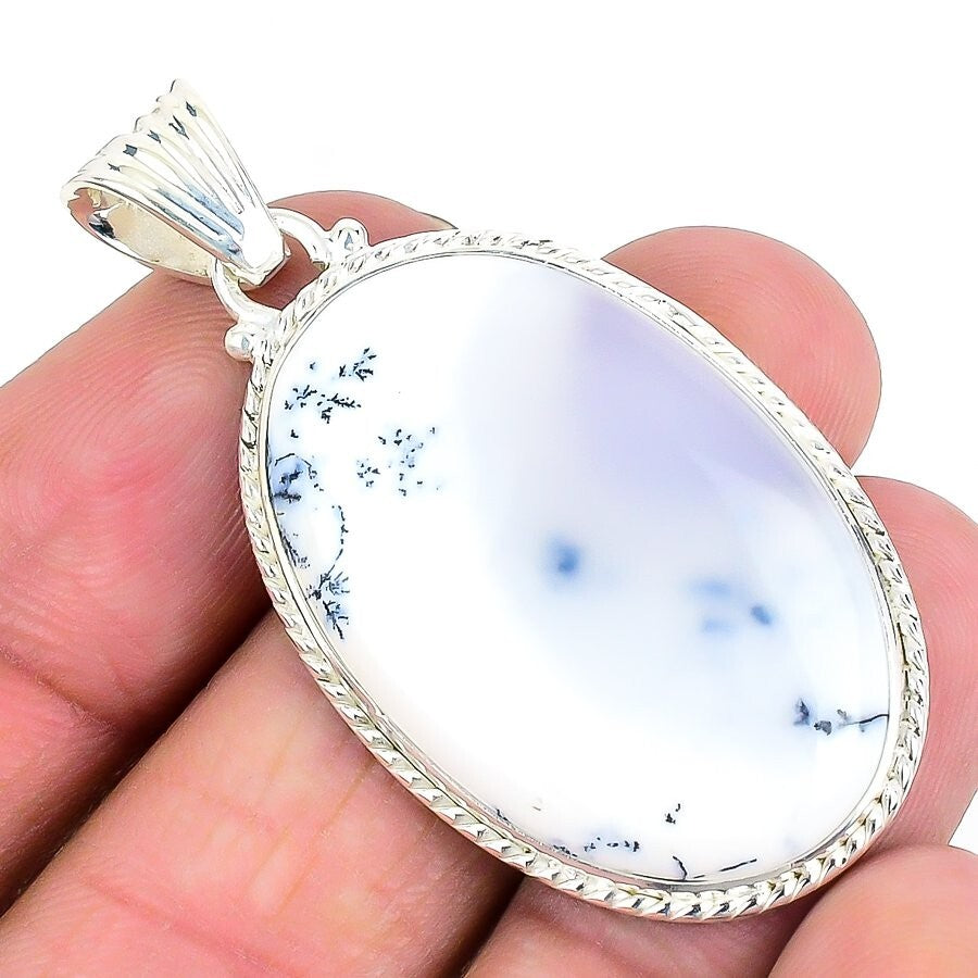 Dendrite Opal Stone Sterling Silver Wedding Mother Bezel Engagement Boho Pendant