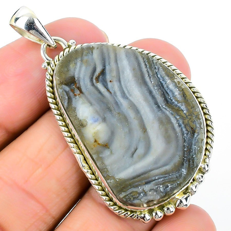 Desert Rose Druzy Gemstone Solid Sterling Silver Art Deco Wedding Mother Pendant