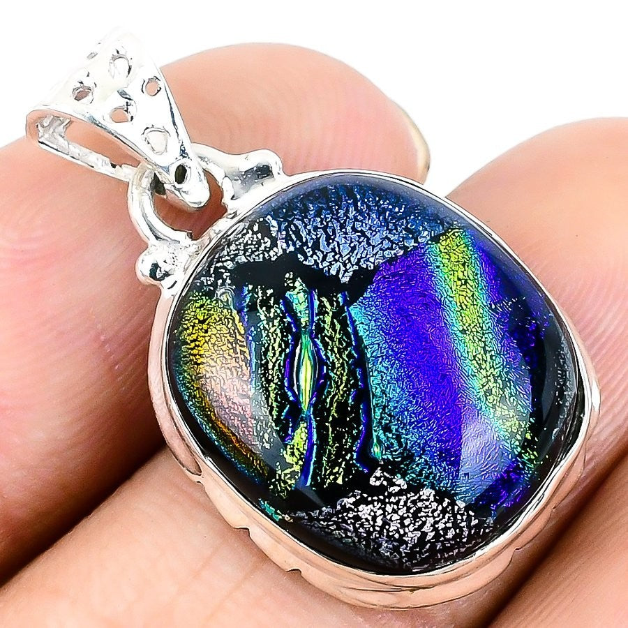 Dichoric Glass Stone Solid Silver Art Deco Ethnic Daughter Handcrafted Pendant