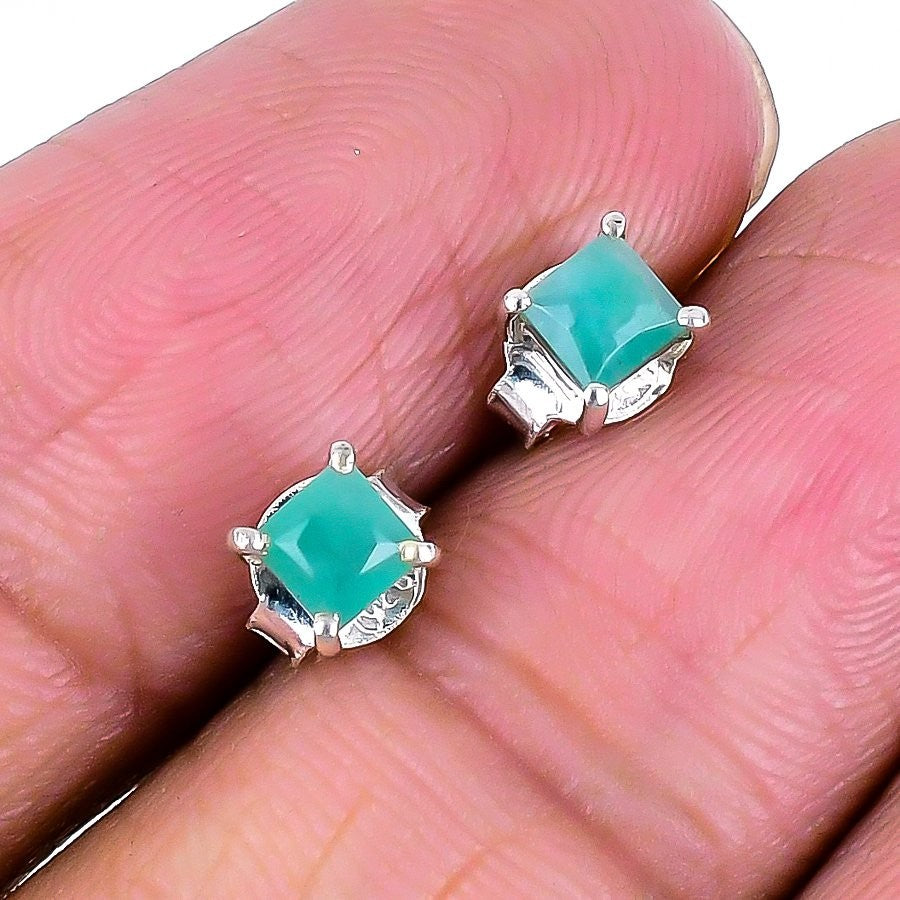 Emerald Faceted Stone Stud Post Anniversary Daughters Day Earrings Solid Silver
