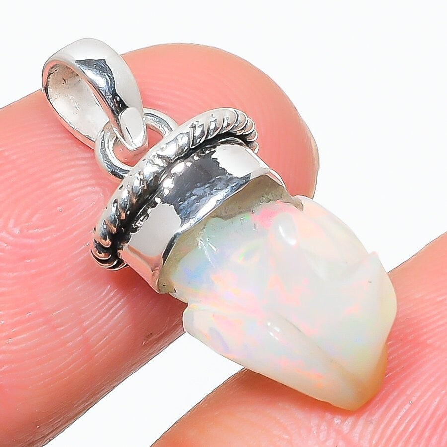 Ethiopian Opal Gemstone 925 Silver Artisan Mother Anniversary Wedding Pendant