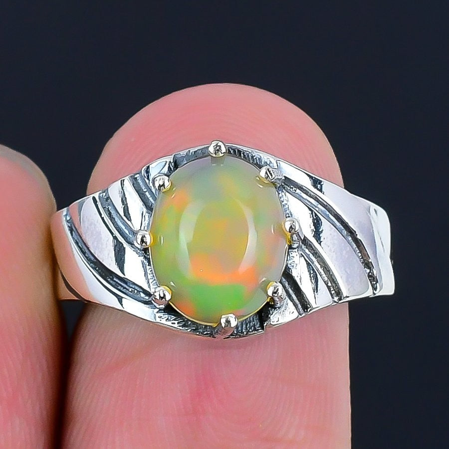 Ethiopian Opal Gemstone 925 Solid Silver Statement Bezel Birthday Ring Size 6