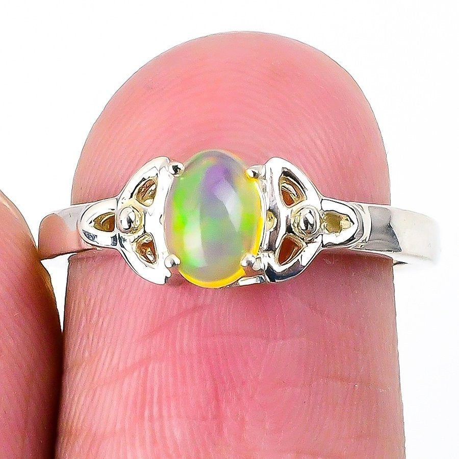 Ethiopian Opal Gemstone Cluster Mother Ring Jewelry Size 8 925 Sterling Silver
