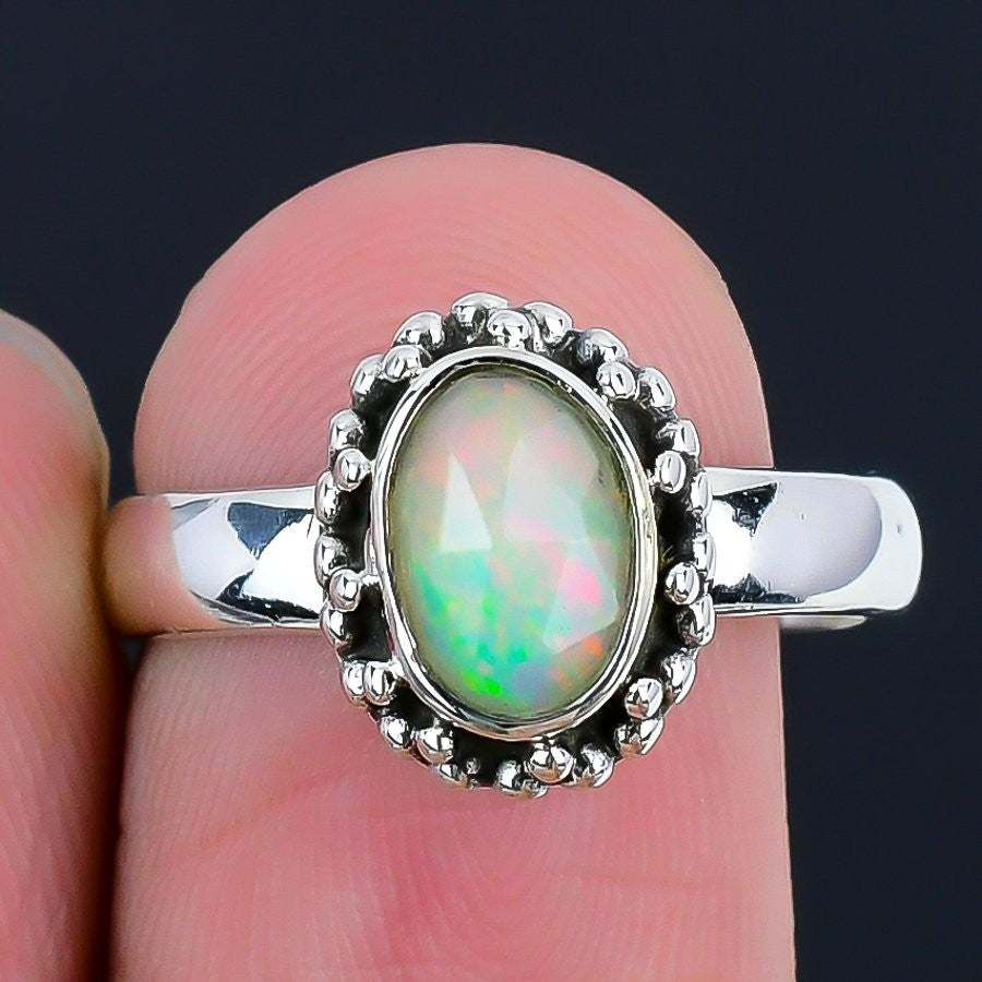 Ethiopian Opal Gemstone Daughters Day Sister Statement Ring Size 8 Solid Silver