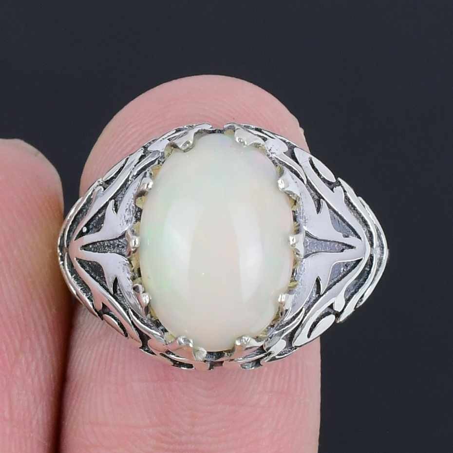 Ethiopian Opal Gemstone Engagement Art Deco Wife Cluster Unique Ring 925 Silver