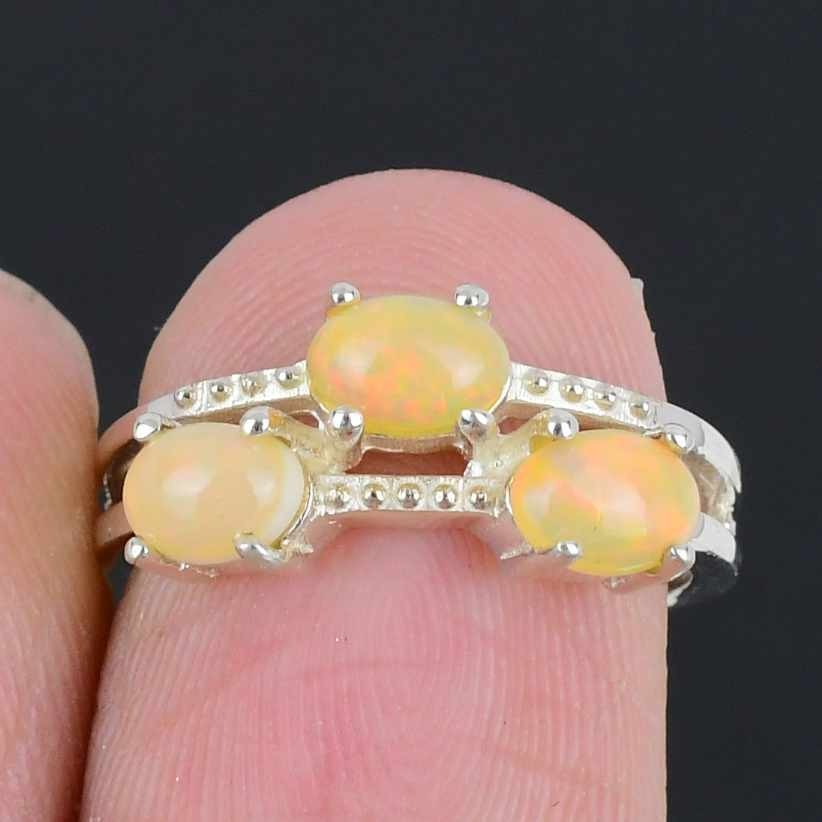 Ethiopian Opal Gemstone Mother Boho Cluster Ring Jewelry Size 6 Sterling Silver