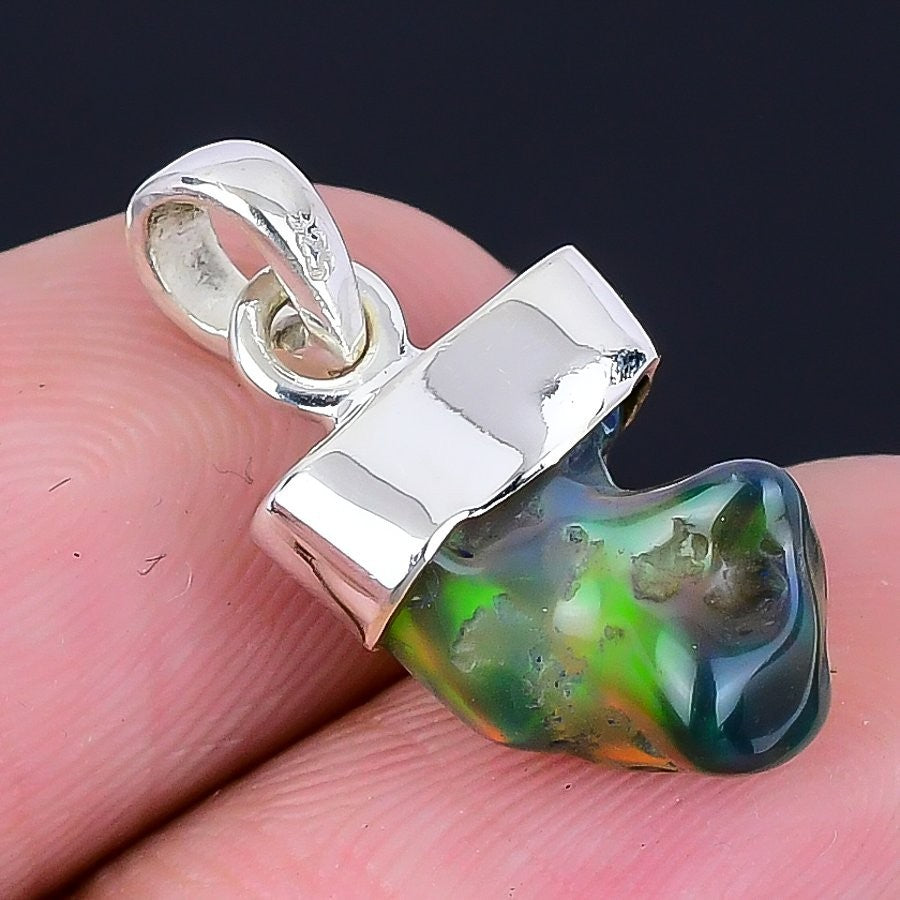 Ethiopian Opal Gemstone Solid Silver Boho Mother Stud Handmade Pendant Jewelry