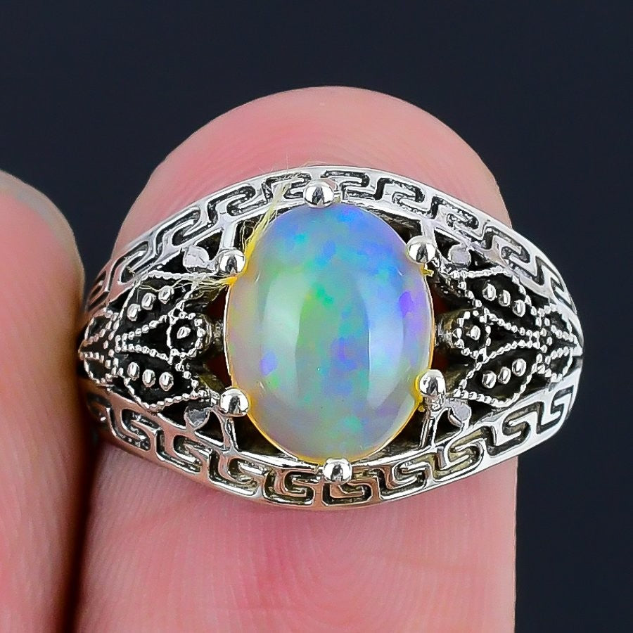 Ethiopian Opal Gemstone Solid Silver Statement Bezel Artisan Ring Jewelry Size 7