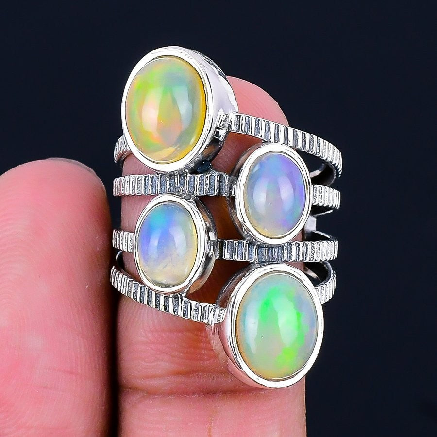 Ethiopian Opal Gemstone Solid Silver Trendy Statement Sisters Day Ring Size 8