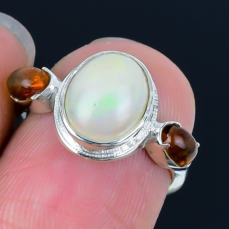 Ethiopian Opal Gemstone Solid Sterling Silver Boho Statement Ring Jewelry US 5.5