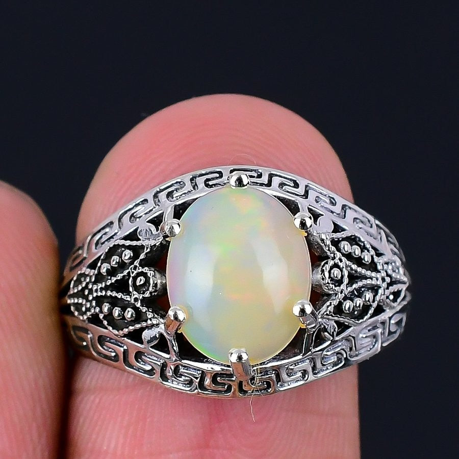 Ethiopian Opal Gemstone Sterling Silver Engagement Statement Ring Jewelry Size 8