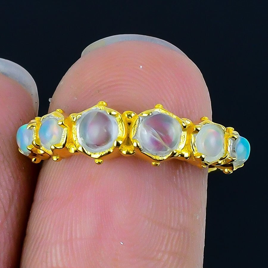 Ethiopian Opal Gemstone Sterling Silver Gold Vermeil Statement Ring Jewelry US 7
