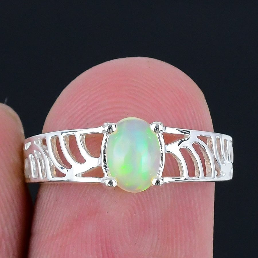 Ethiopian Opal Gemstone Sterling Silver Statement Handmade Ring Jewelry Size 5.5