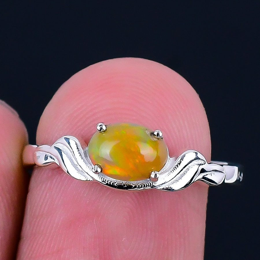 Ethiopian Opal Stone 925 Silver Art Deco Statement Mother Ring Jewelry Size 7.5