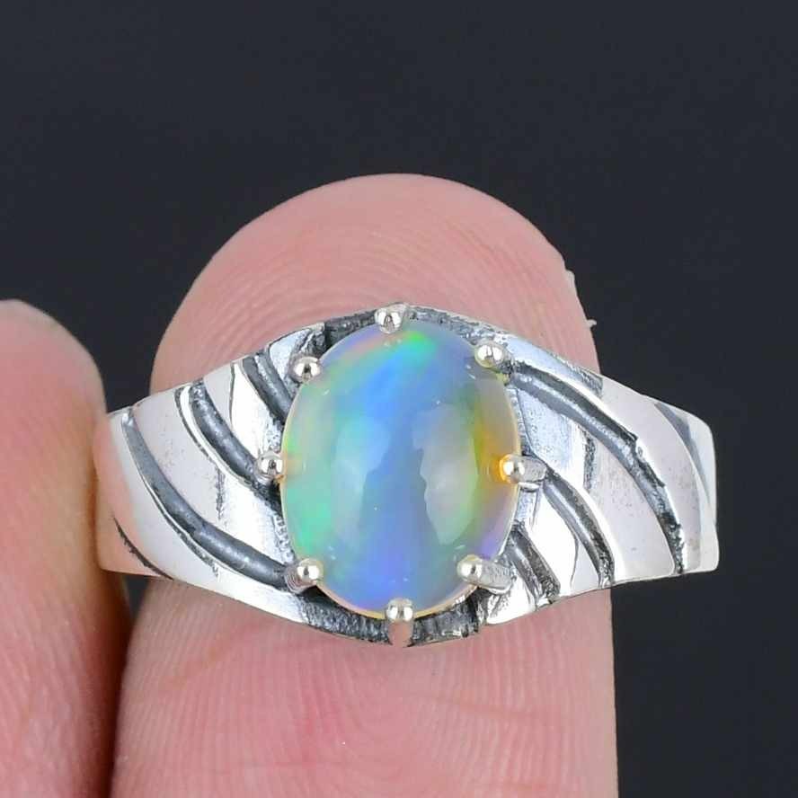Elegant Ethiopian Opal Stone 925 Silver Cluster Anniversary