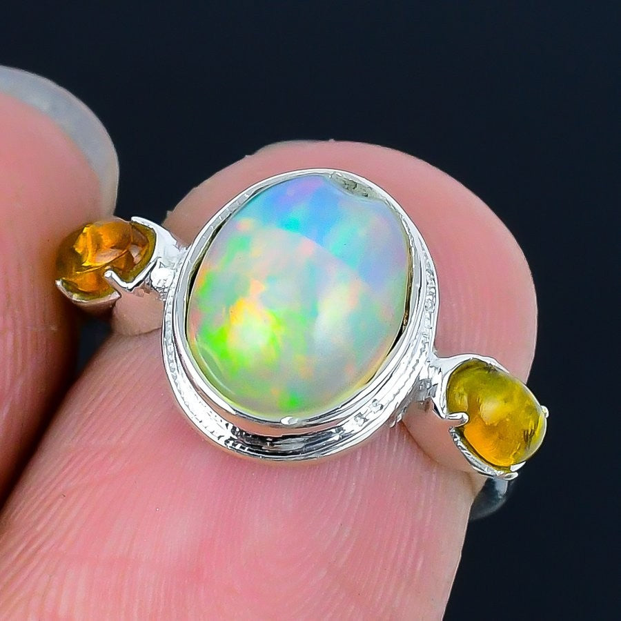 Ethiopian Opal Stone 925 Solid Silver Anniversary Sister Statement Ring Jewelry