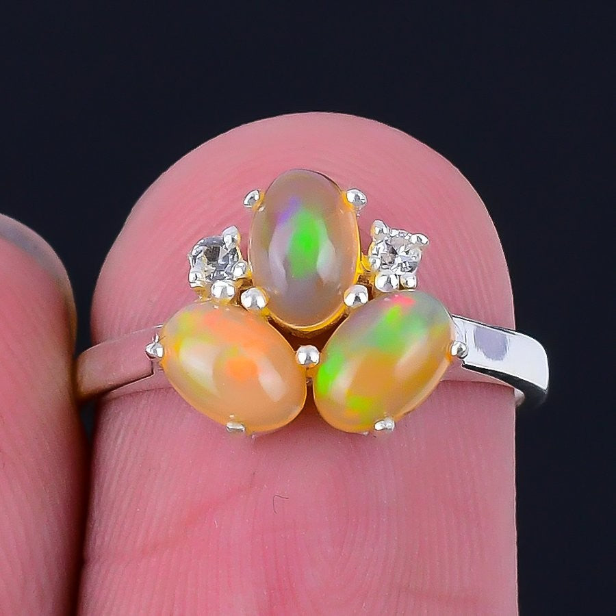 Elegant Ethiopian Opal Stone 925 Solid Silver Cluster in 925