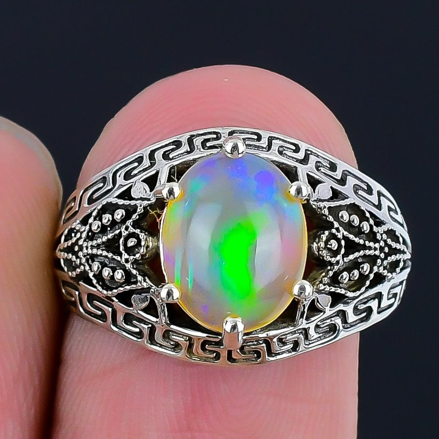 Ethiopian Opal Stone 925 Solid Silver Statement Best Daughters Gift Ring US 7