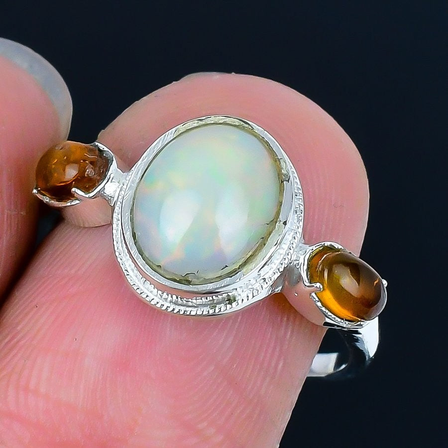 Ethiopian Opal Stone 925 Solid Silver Unique Statement Mother Ring Jewelry US 8