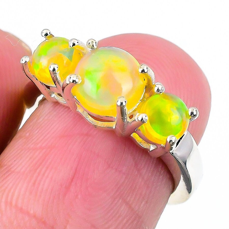 Ethiopian Opal Stone Daughter Cluster Handcrafted Ring Jewelry Size 6 925 Silver
