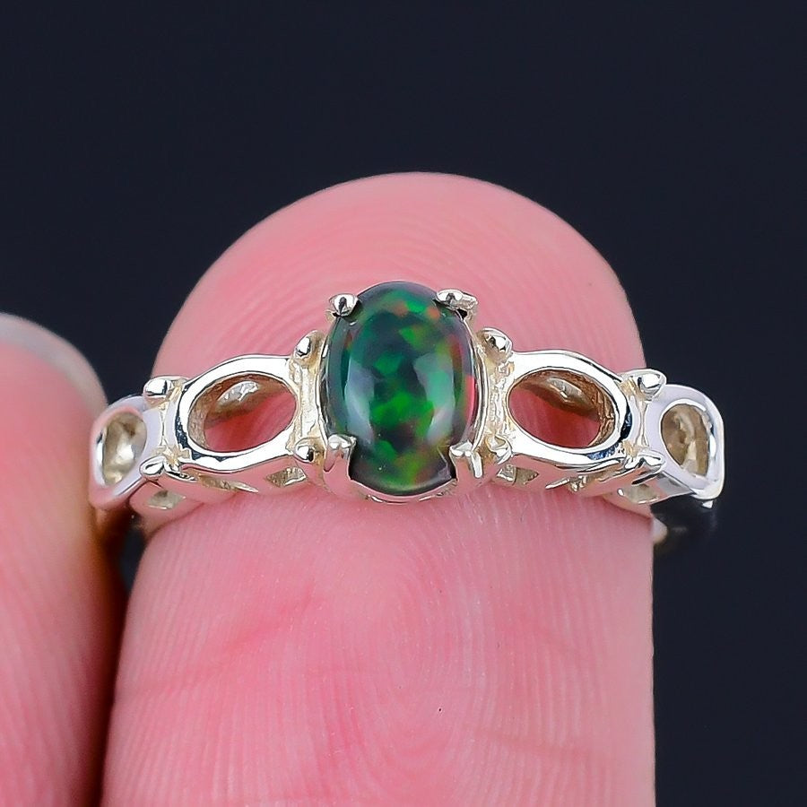Ethiopian Opal Stone Ethnic Statement Artisan Ring Size 6 925 Sterling Silver