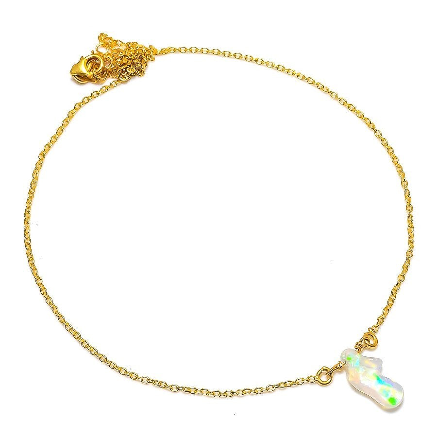 Ethiopian Opal Stone Sister New Chain Necklace Jewelry Solid Silver Gold Vermeil