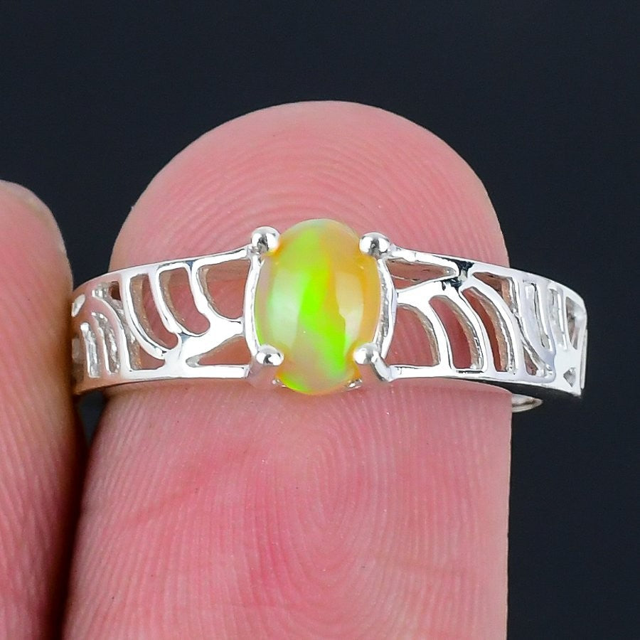 Ethiopian Opal Stone Solid Silver Mother Handcrafted Wedding Statement Ring US 7