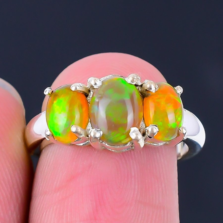 Ethiopian Opal Stone Solid Silver Statement Sister Anniversary Trendy Ring US 7