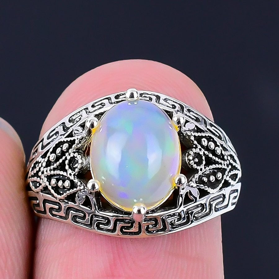 Ethiopian Opal Stone Solid Silver Wedding Statement Unique New Ring Jewelry US 6