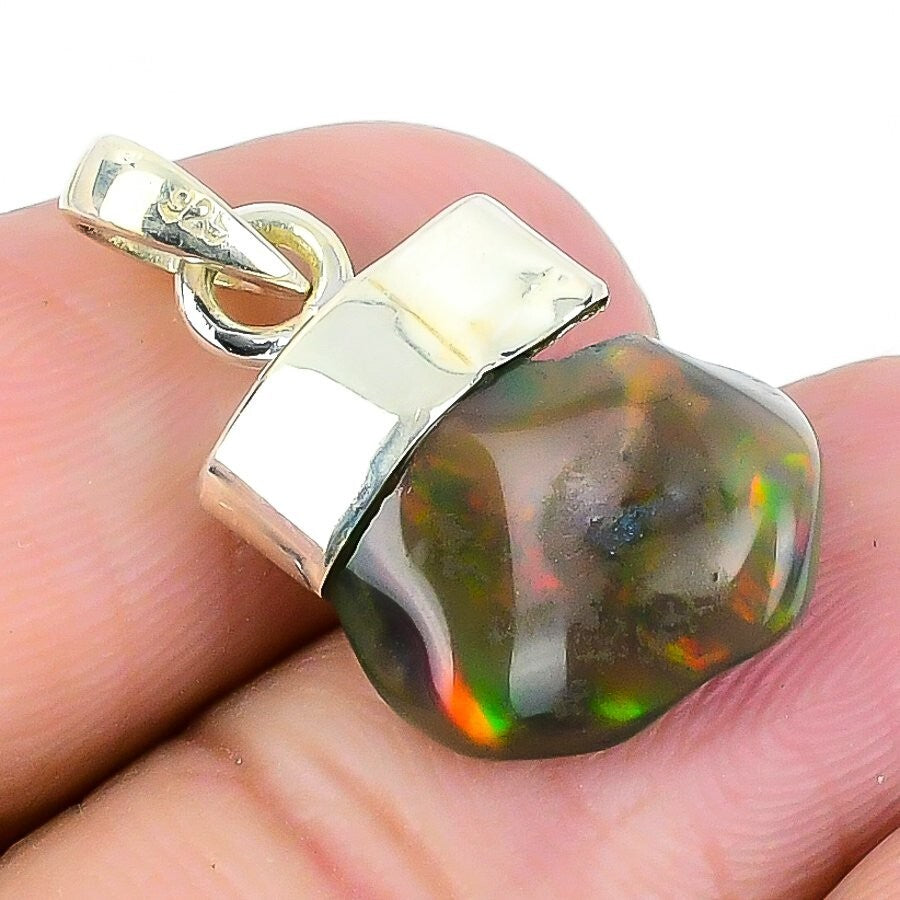 Ethiopian Opal Stone Solid Sterling Silver Artisan Anniversary Birthday Pendant
