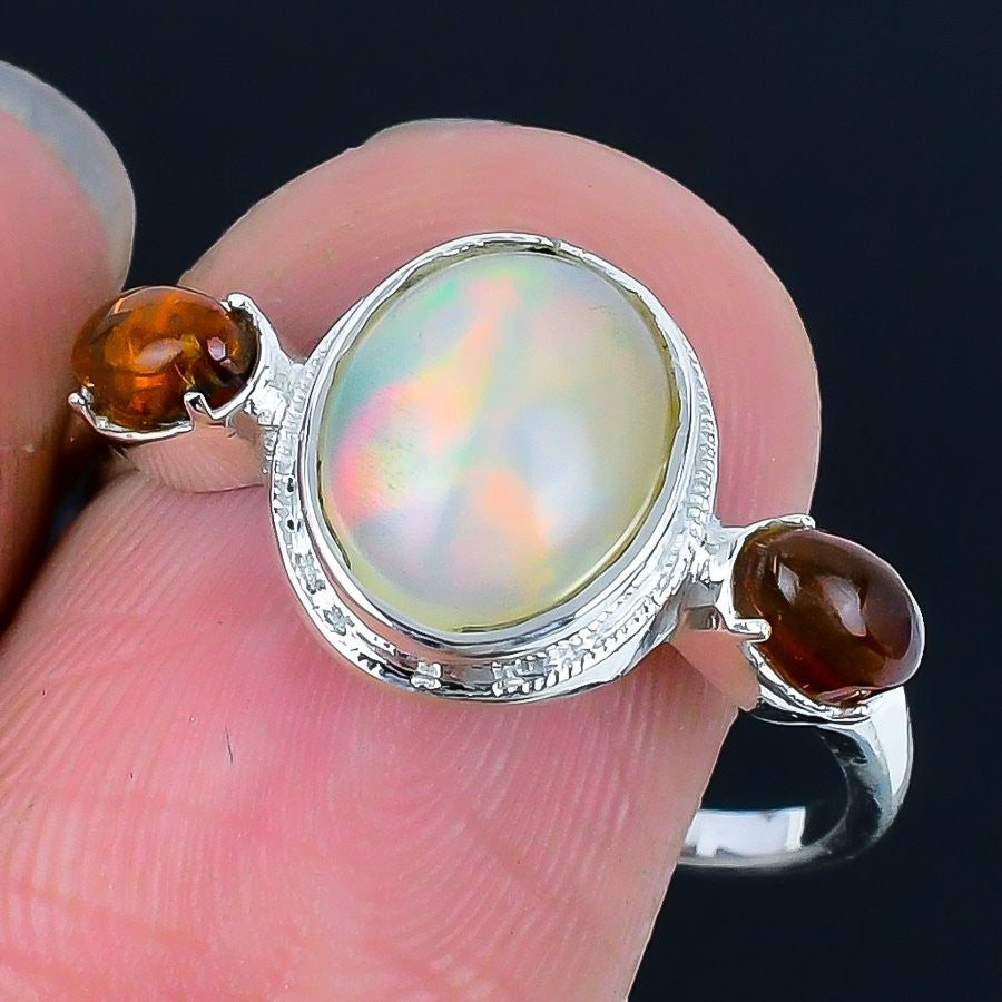 Ethiopian Opal Stone Solid Sterling Silver Birthday Ethnic Statement Ring US 10
