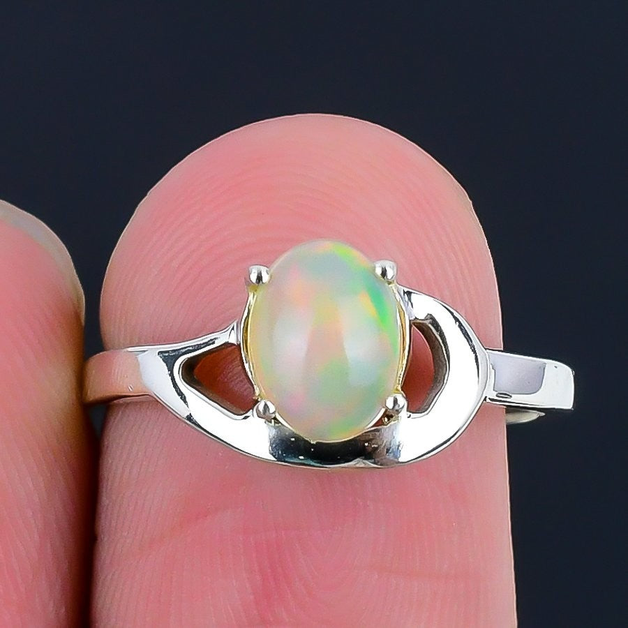 Ethiopian Opal Stone Solid Sterling Silver Birthday Statement Ethnic Ring US 7.5