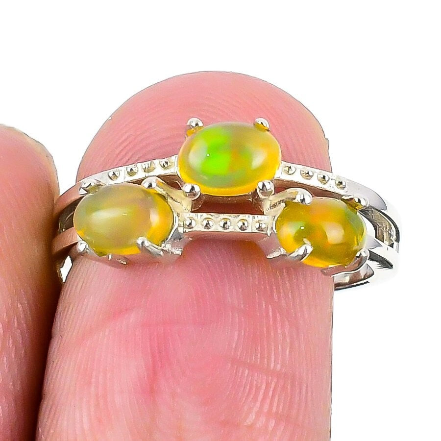Ethiopian Opal Stone Solid Sterling Silver Engagement Cluster Ethnic Ring Size 8