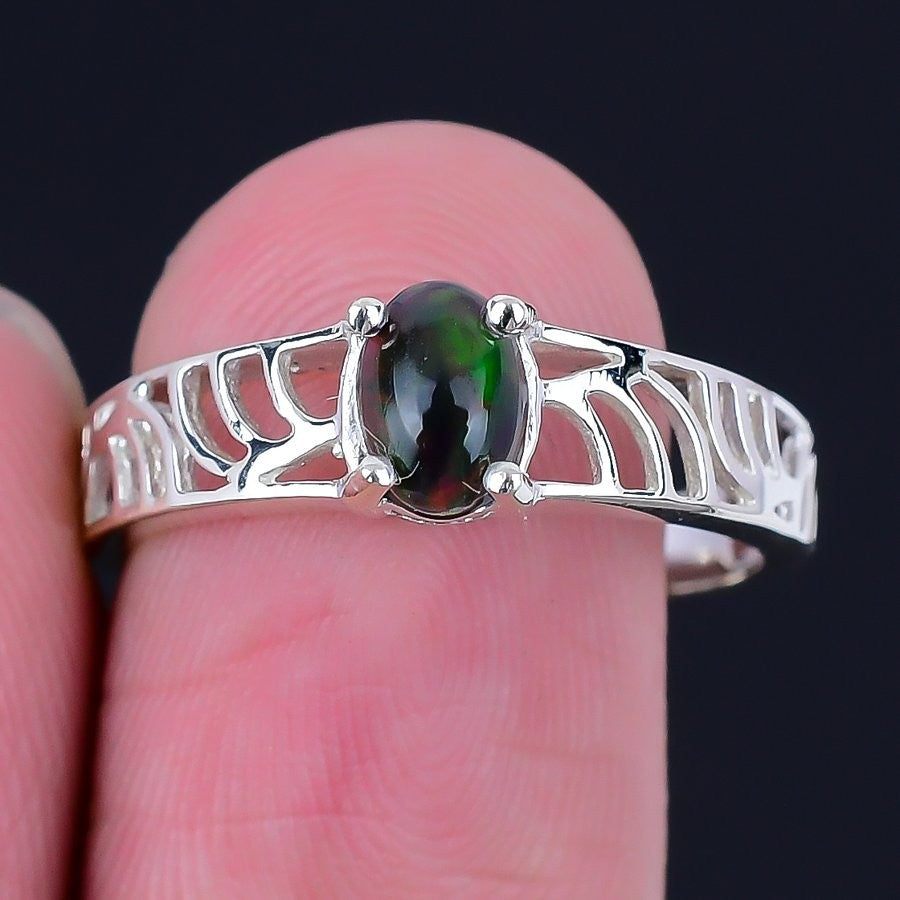 Ethiopian Opal Stone Solid Sterling Silver Mother Statement Wedding Ring Size 9