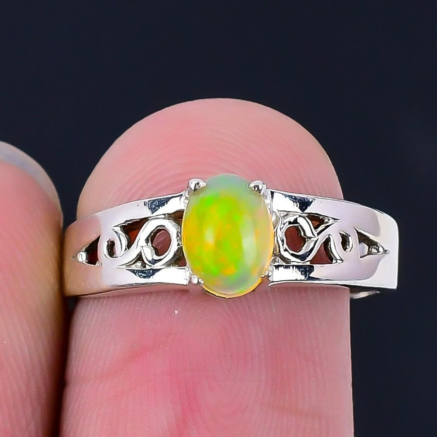 Ethiopian Opal Stone Solid Sterling Silver Statement Handcrafted Wife Ring US 8