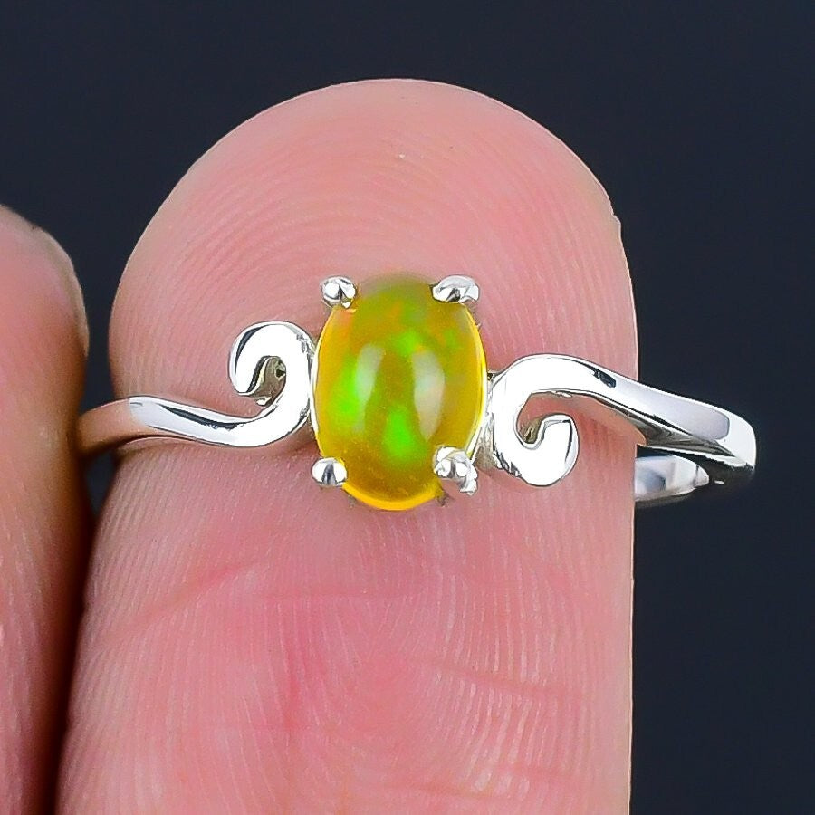 Ethiopian Opal Stone Sterling Silver Cluster Art Deco Wife Ring Jewelry Size 8