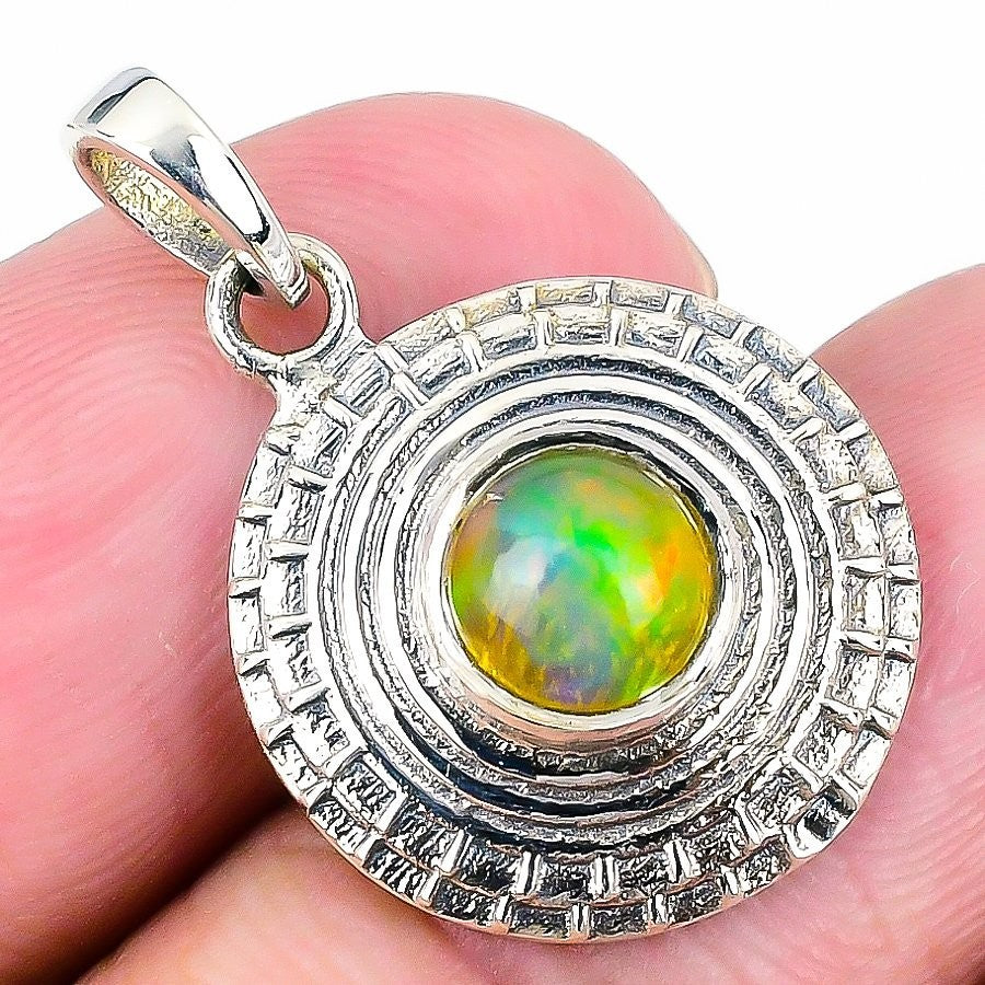 Ethiopian Opal Stone Sterling Silver Sister Art Deco Artisan Anniversary Pendant