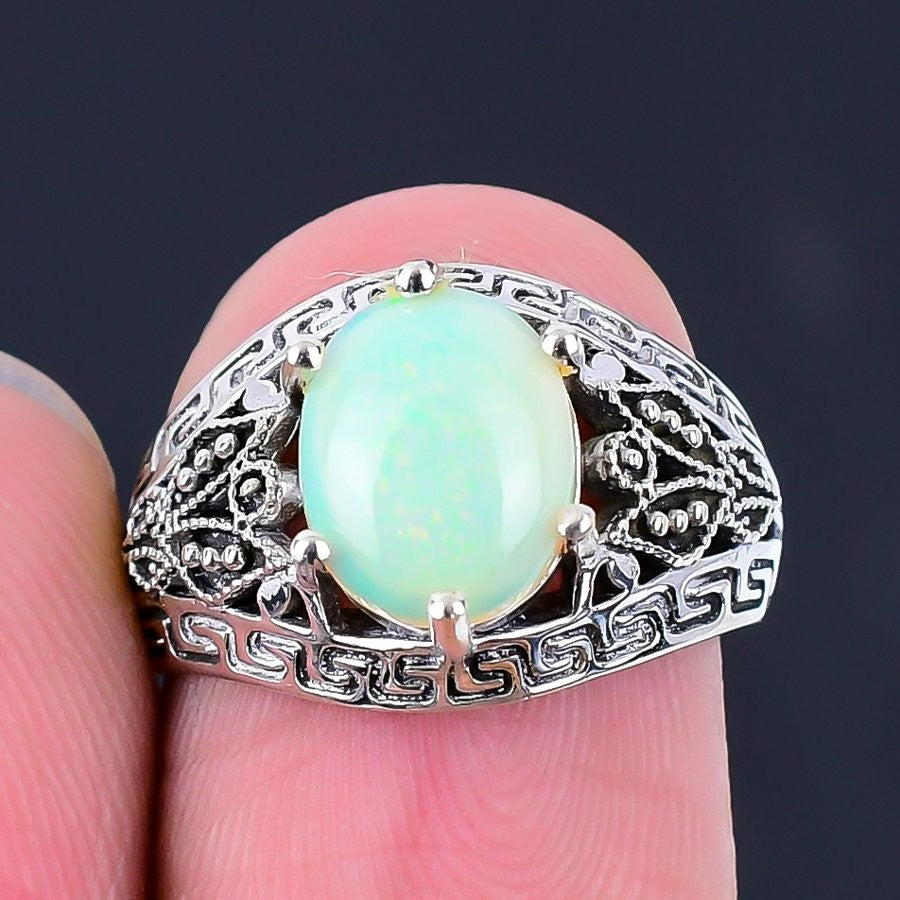 Ethiopian Opal Stone Sterling Silver Statement Daughter Engagement New Ring US 6