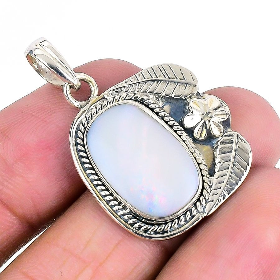Ethiopian Opal Stone Wedding Daughter Handmade Unique Pendant Jewelry 925 Silver