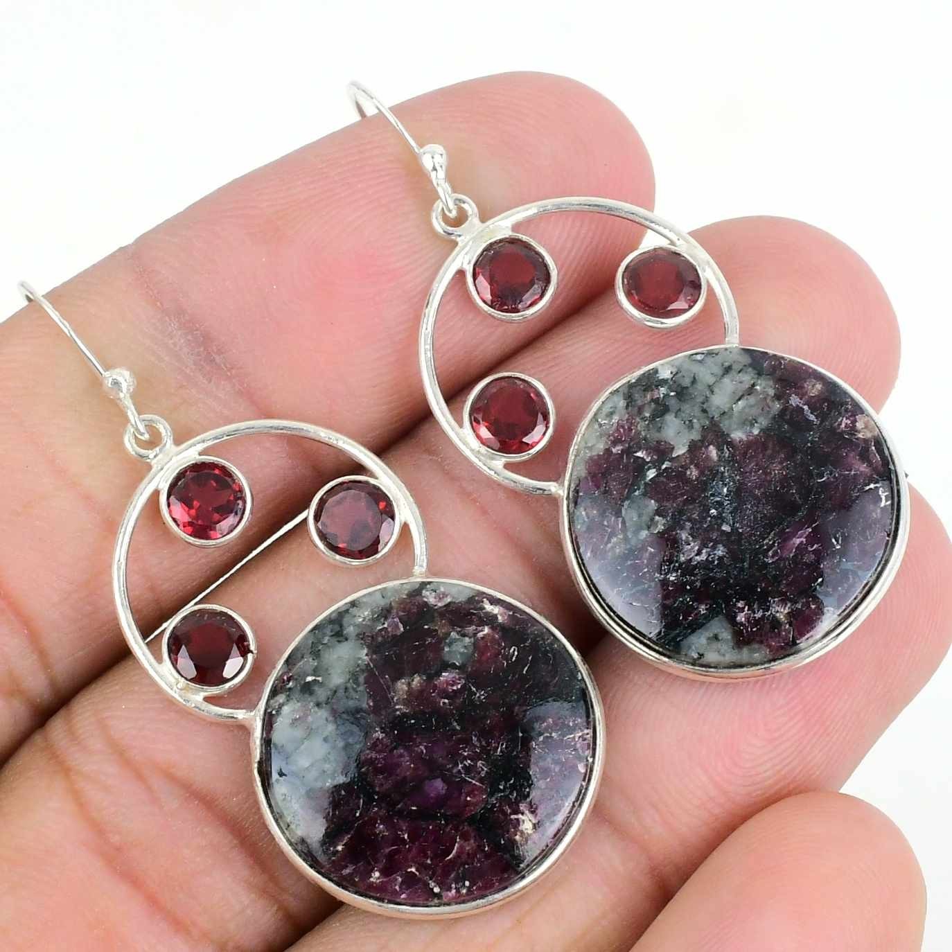 Eudialite & garnet Gemstone Solid Silver Birthday Dangling New Earrings Jewelry