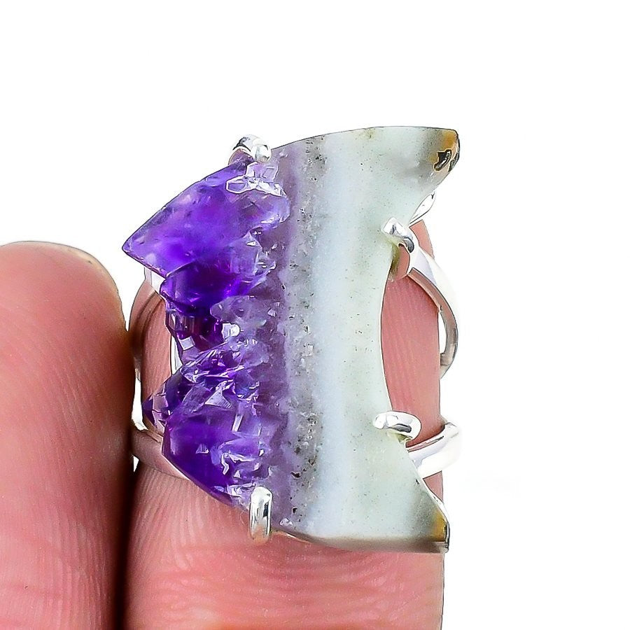 February Amethyst Gemstone Boho Statement Wedding Ring 925 Sterling Silver US 7