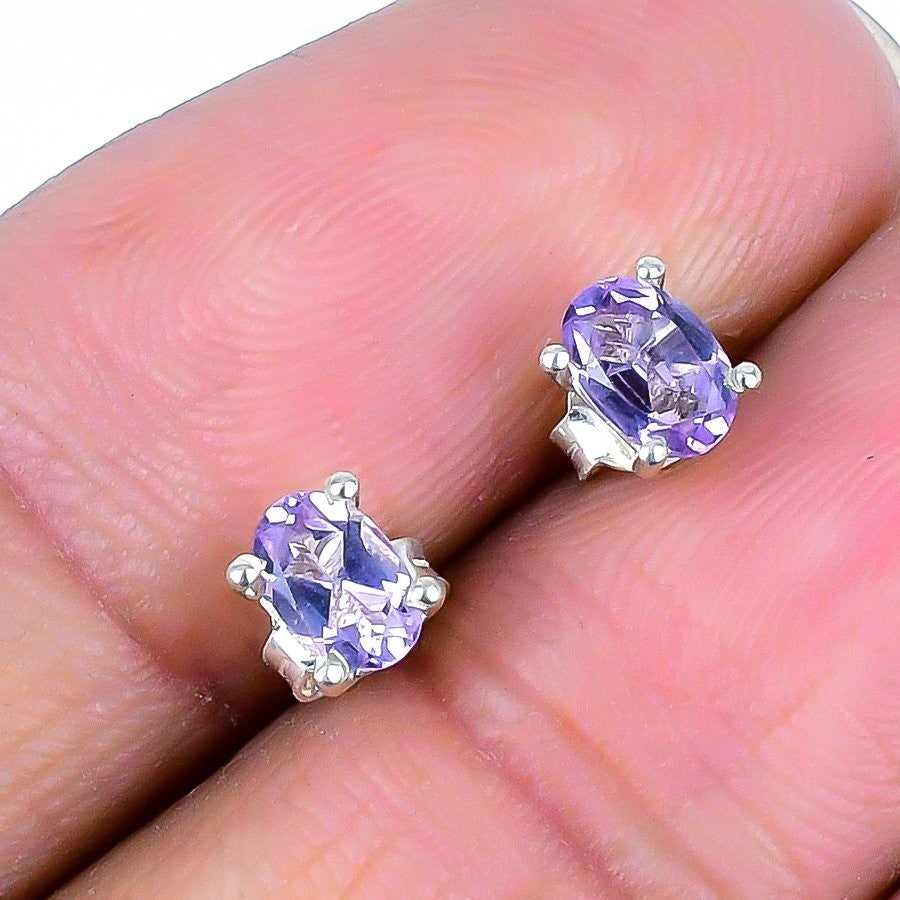 February Birth Amethyst Faceted Stone 925 Silver Sister Stud Earrings Jewelry
