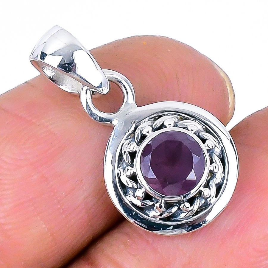 February Birth Amethyst Faceted Stone Solid Sterling Silver Wedding Wife Pendant