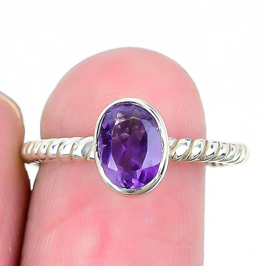 Elegant February Natural Amethyst Faceted Solid Silver Engag